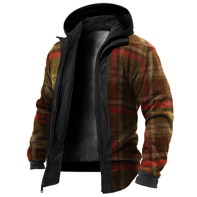 Checkered Checkerboard Retro Men's Outdoor Warm Fleece Tactics Jacket