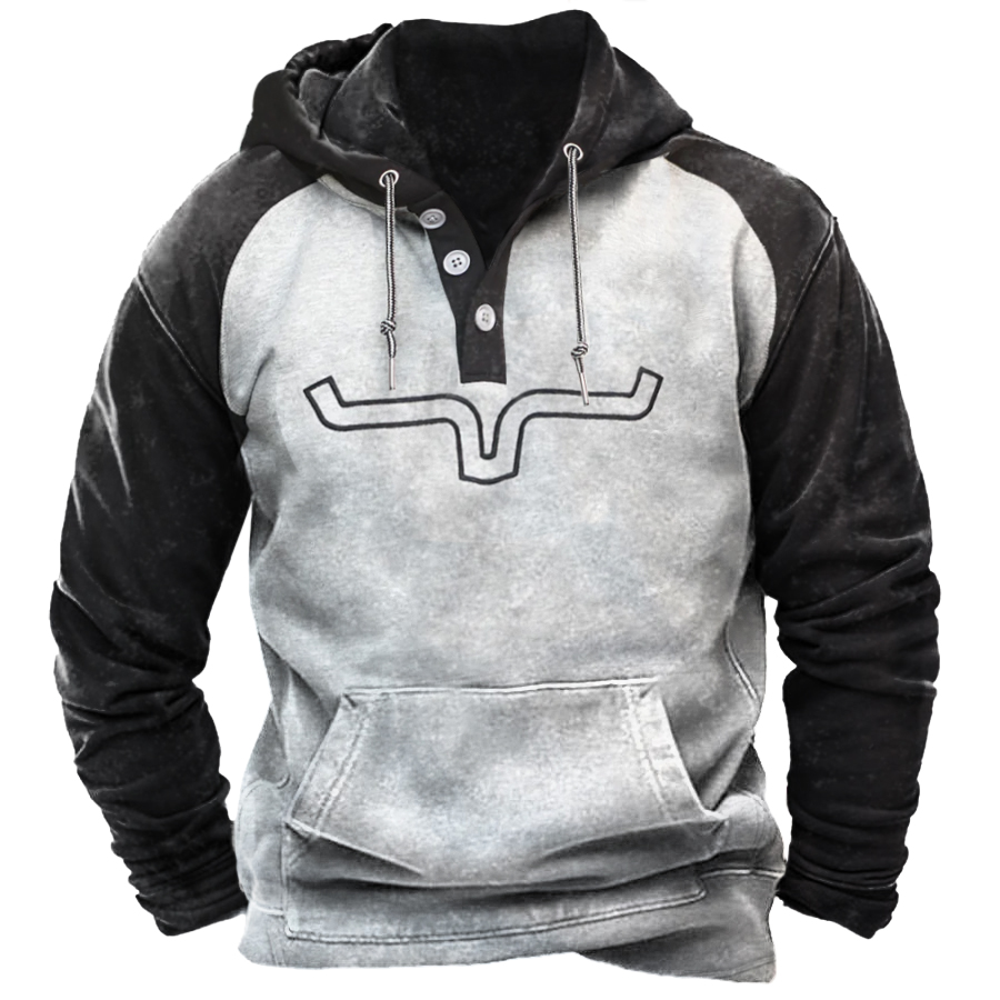 Men's Vintage Western Cowboy Color Matching Hoodie