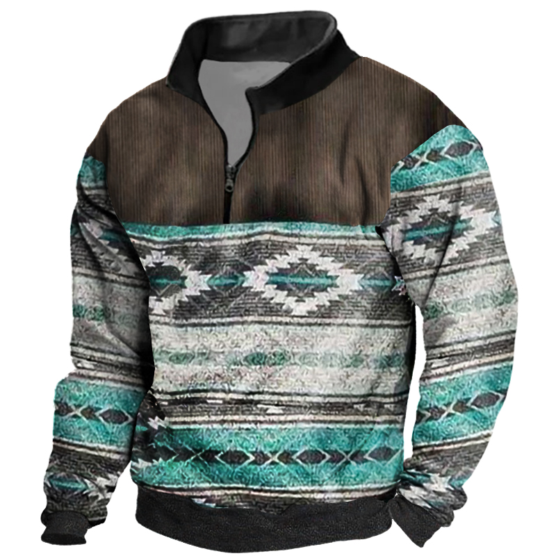 Native American Culture Henley Collar Long Sleeve Sweatshirt