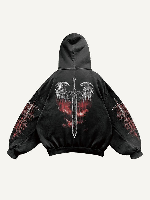 Figure&Sword Print Slant Pockets Hoodie