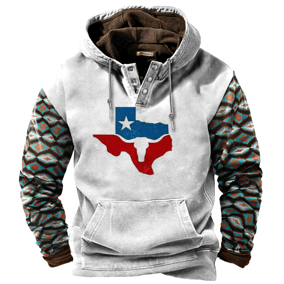 Men's Outdoor Retro Western Cowboy Print Hoodie
