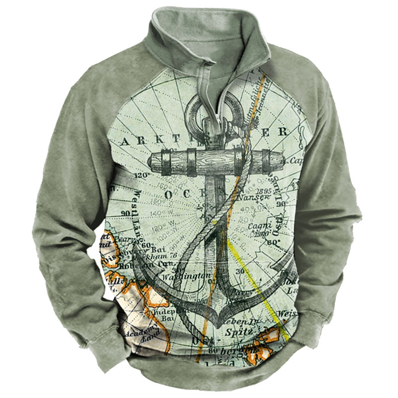 Pirate Ship Nautical Compass Retro Men's Sweatshirt