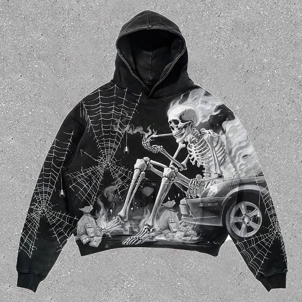 Flaming skull print hoodie