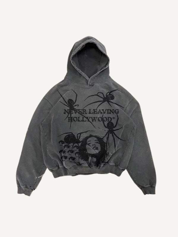 Figure&Spider&Letter Pattern Slant Pockets Hoodie