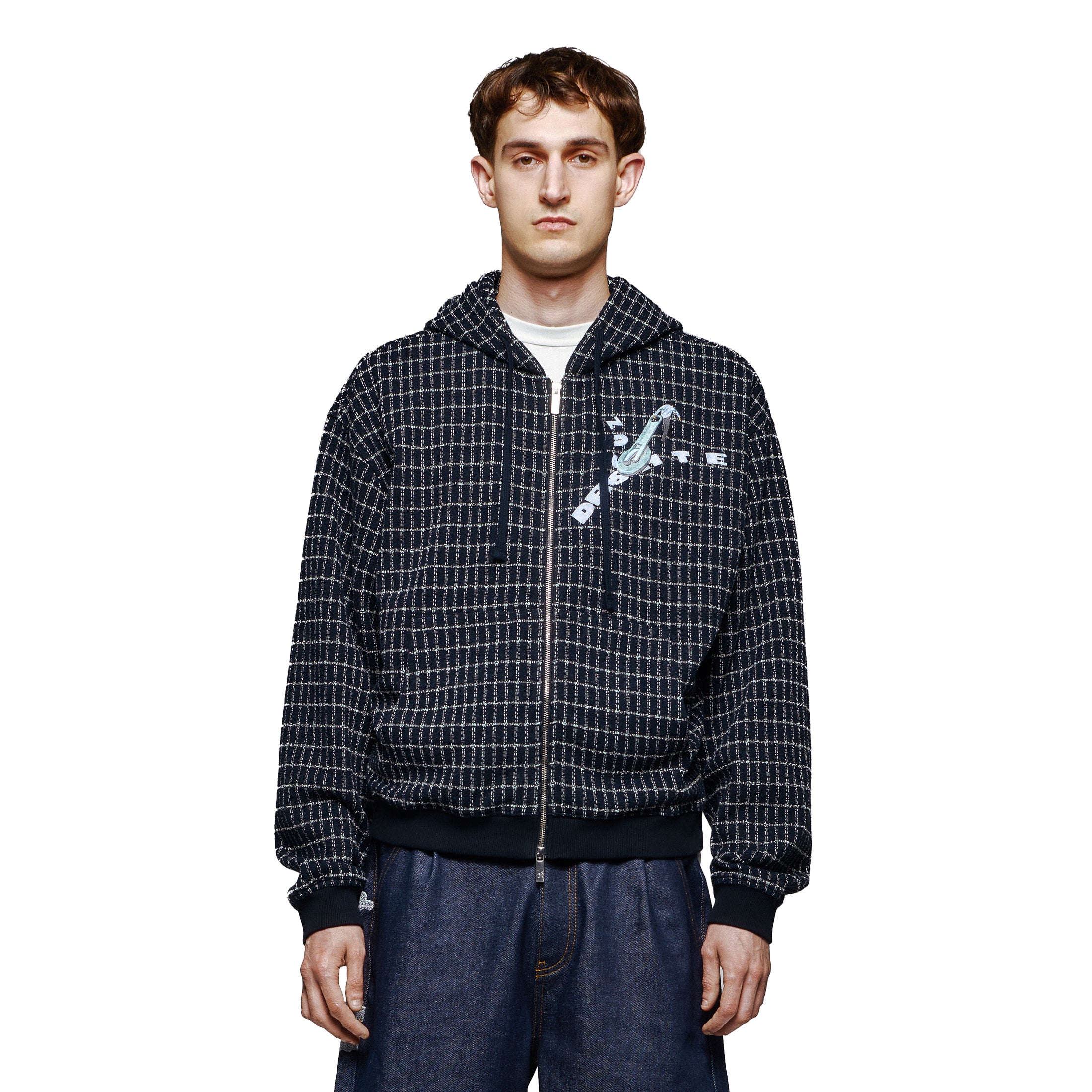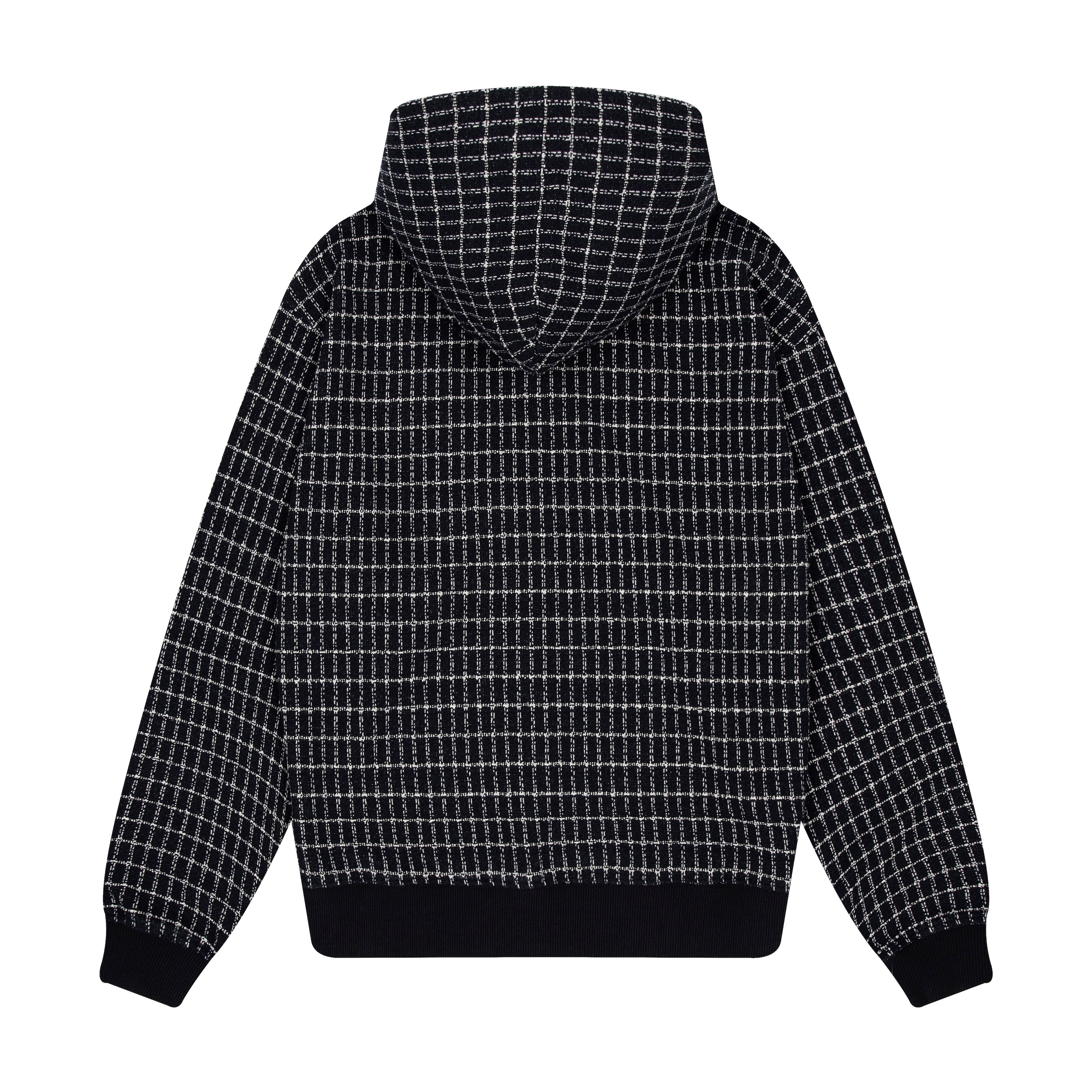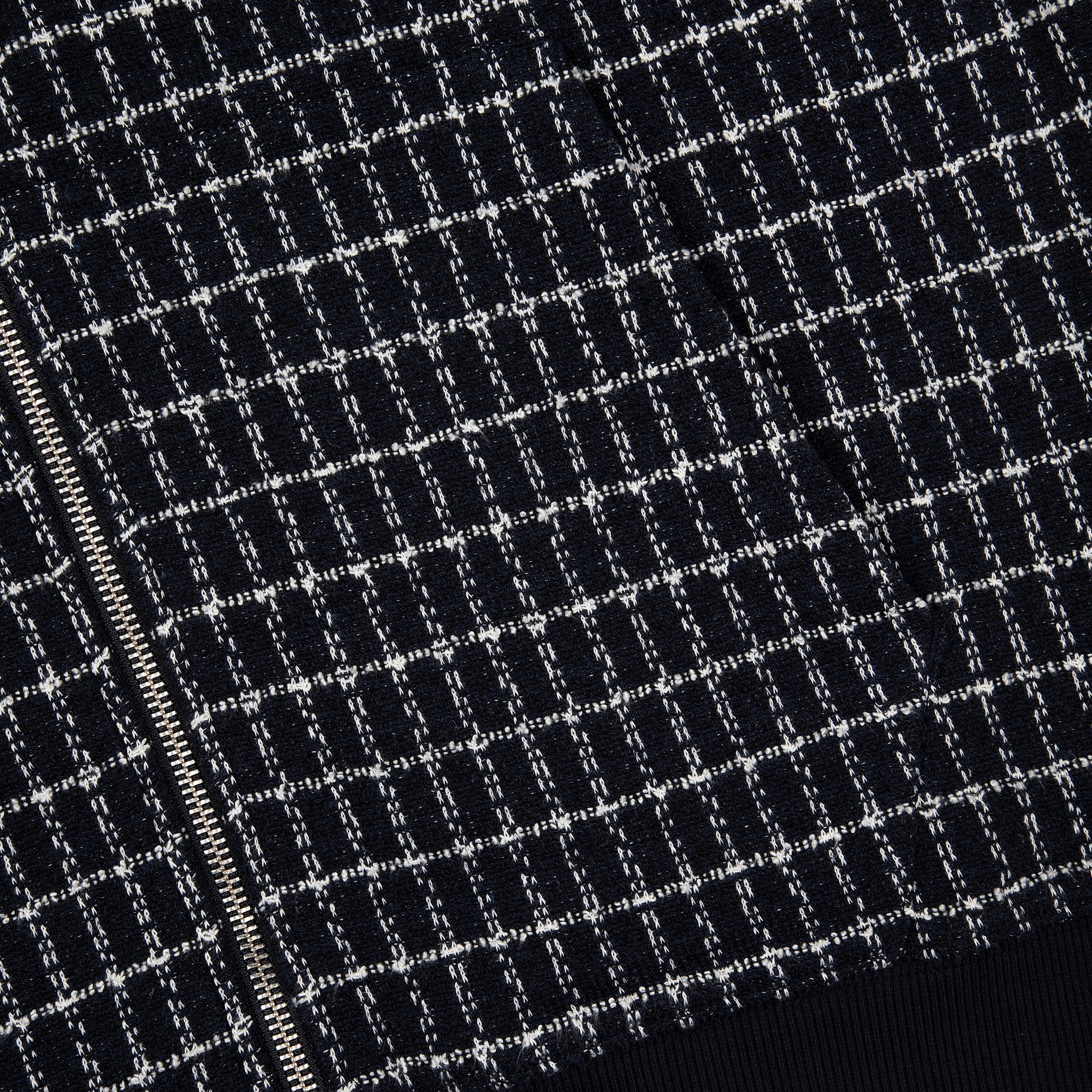 390gsm tweed fabric / 46% polyester 40% cotton 14% cv / embroidery on front / with double-slided YKK zipper / cropped fit / fits true to size